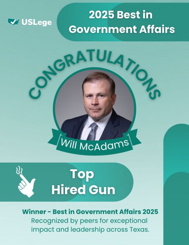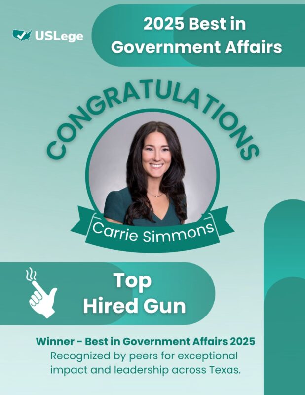 This week USLege announced their “Texas’s 2025 Best in Government Affairs” awards that are chosen from nominations amongst peers in the government relations space. Mike Toomey & Associates was the proud recipient of three awards
